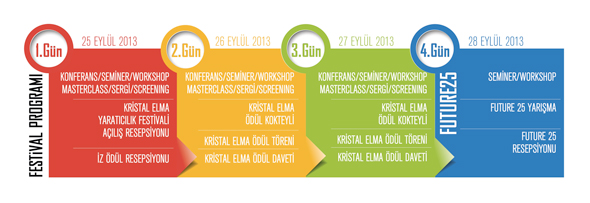 40′ı yabancı 120 konuşmacının katılacağı 25. Kristal Elma Yaratıcılık Festivali’nin etkinlik programına buradan ulaşabilirsiniz.